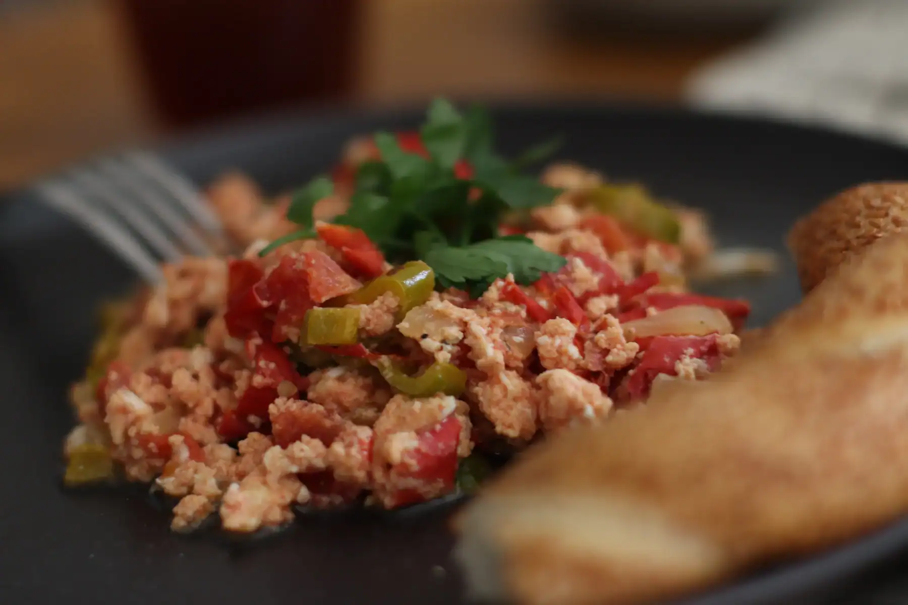 6. Serve immediately while still hot, sprinkle with fresh parsley if you like. Enjoy your menemen with fresh simit (Turkish sesame bread ring) or crusty white bread to scoop up every last bit of the delicious sauce!