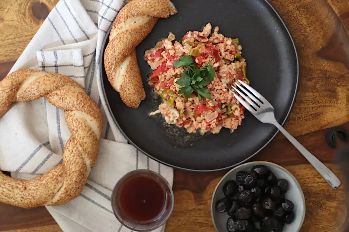 When I was a student in Istanbul, there was a tiny, old-fashioned Menemen place right across from the university. They served nothing but Menemen — in all imaginable variations: the classic version like this one, cheesy ones, and even spicy Sucuk (Turkish sausage) Menemen. Those breakfasts before class are some of my warmest memories — cozy, loud, and full of flavor.