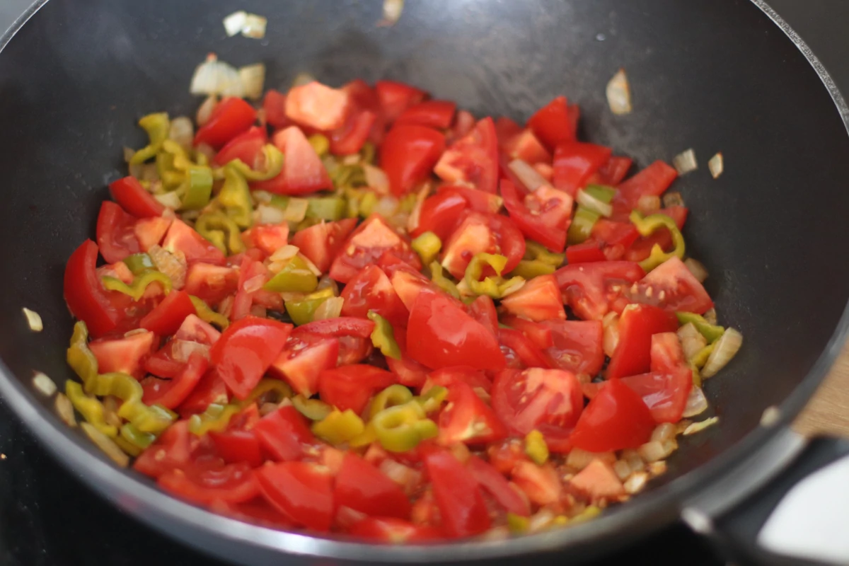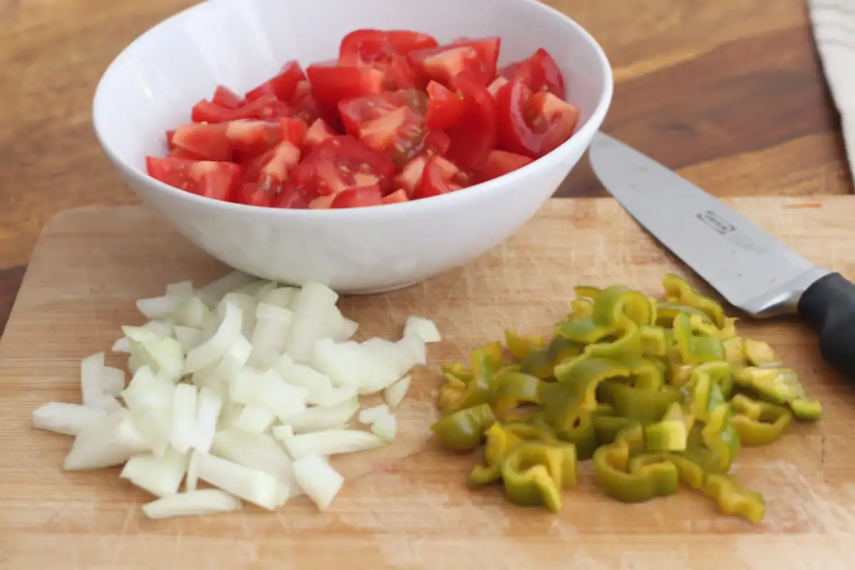1. Chop the onion, tomatoes and pepper.