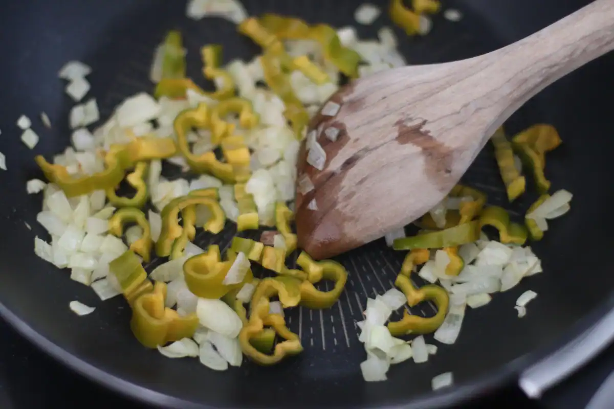 3. Add the pepper and cook on medium heat for 3-5 minutes